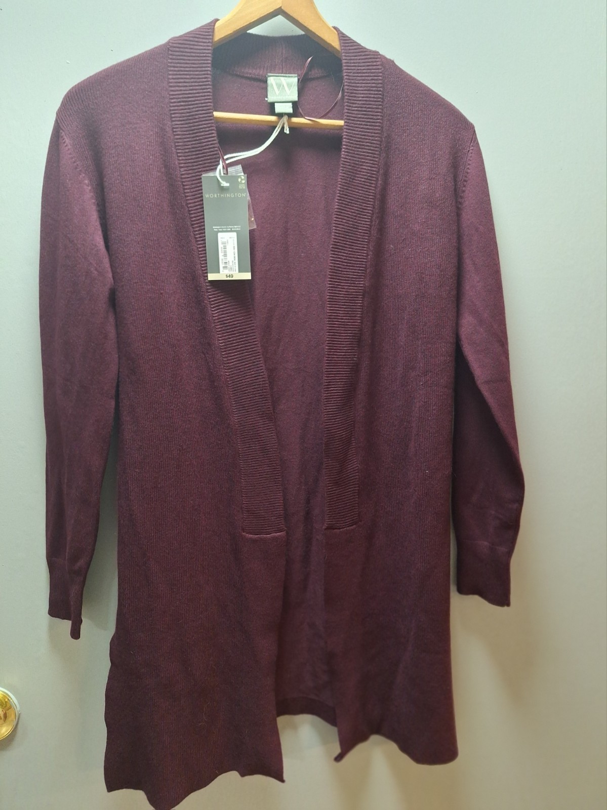 NWT Worthington Women's Cardigan Size XS, Long Sleeve, Open Front Wine Color
