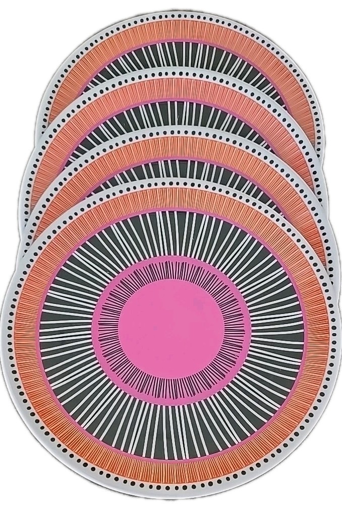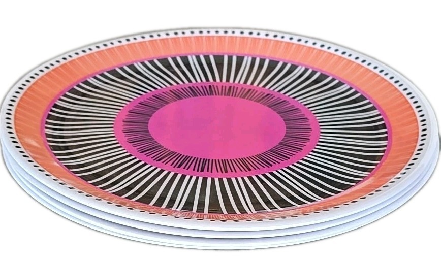 Four (4) BRYLANEHome ~ Melamine ~ ALMIRA ~ 10.5" Multi-Colored Dinner Plates (1)