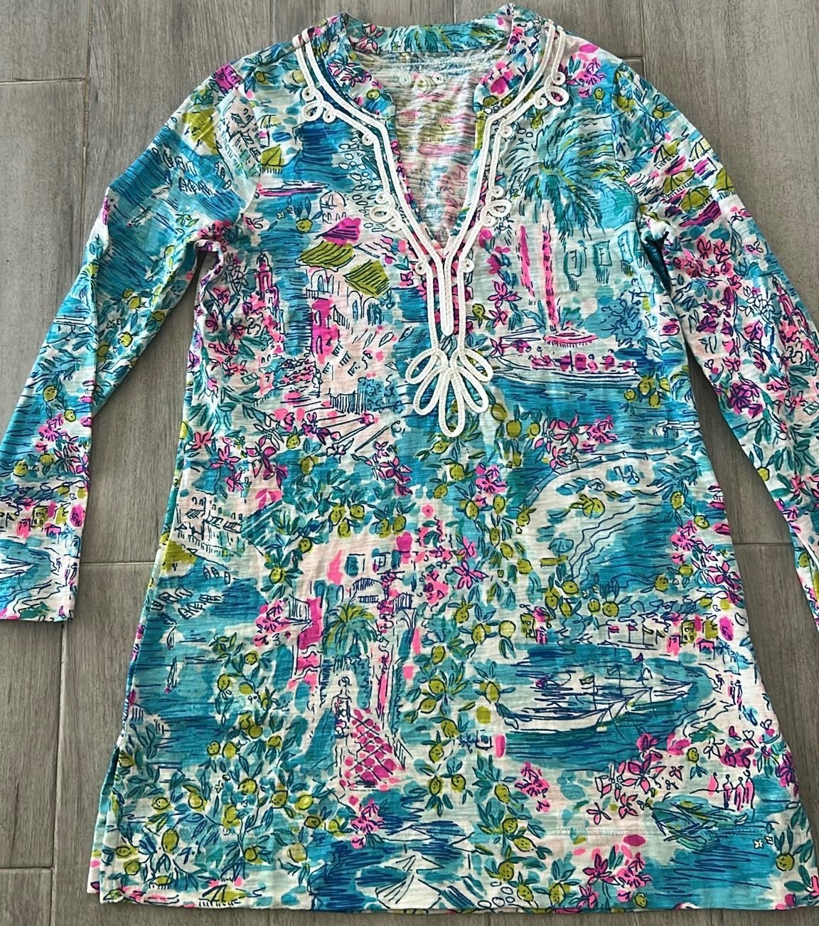 LILLY PULITZER Lot of 2 KAIA TUNIC TOP Pineapple & Postcards from Positano EUC