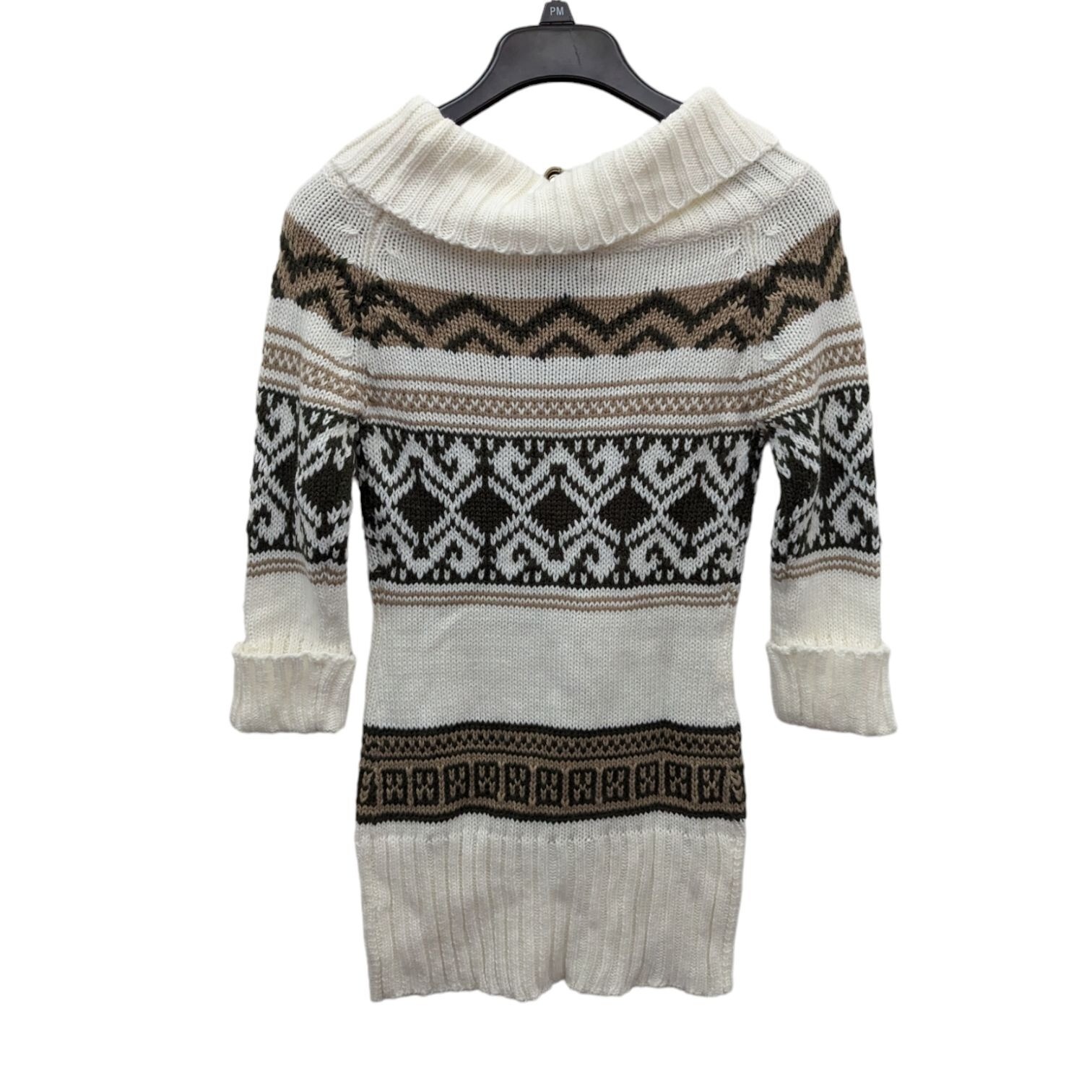 Wet Seal Cream Brown Green Fair Isle Cowl Neck Bodycon Sweater Dress Size Small