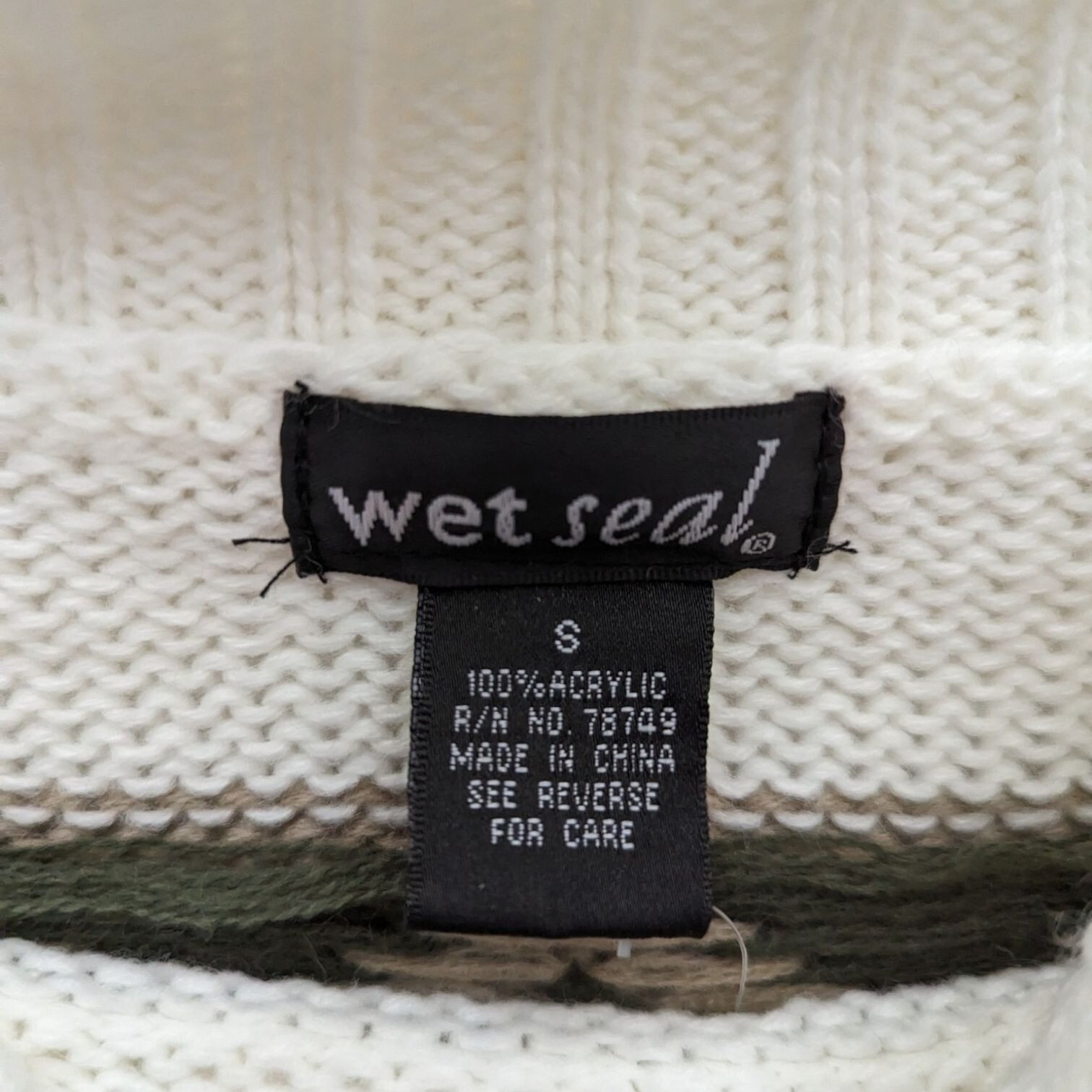 Vintage Y2K Wet Seal Cream Brown Green Fair Isle Cowl Neck Bodycon Sweater Dress Size Small