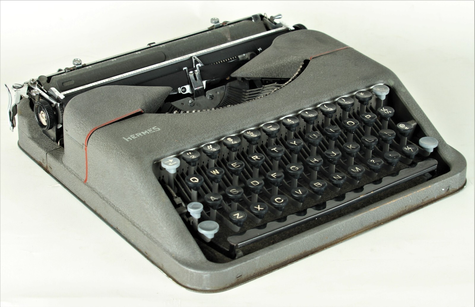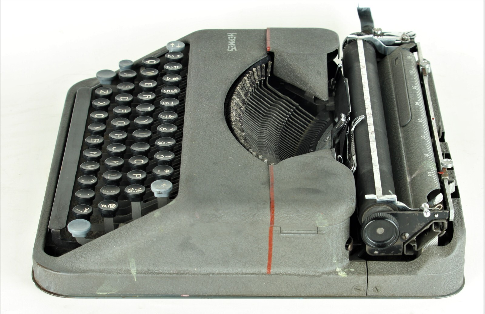 Hermes Rocket portatile portatile da Paillard of Svizzera 1949 Modello 3 N. di serie 5136593 con copertura Grigio grigio Vintage