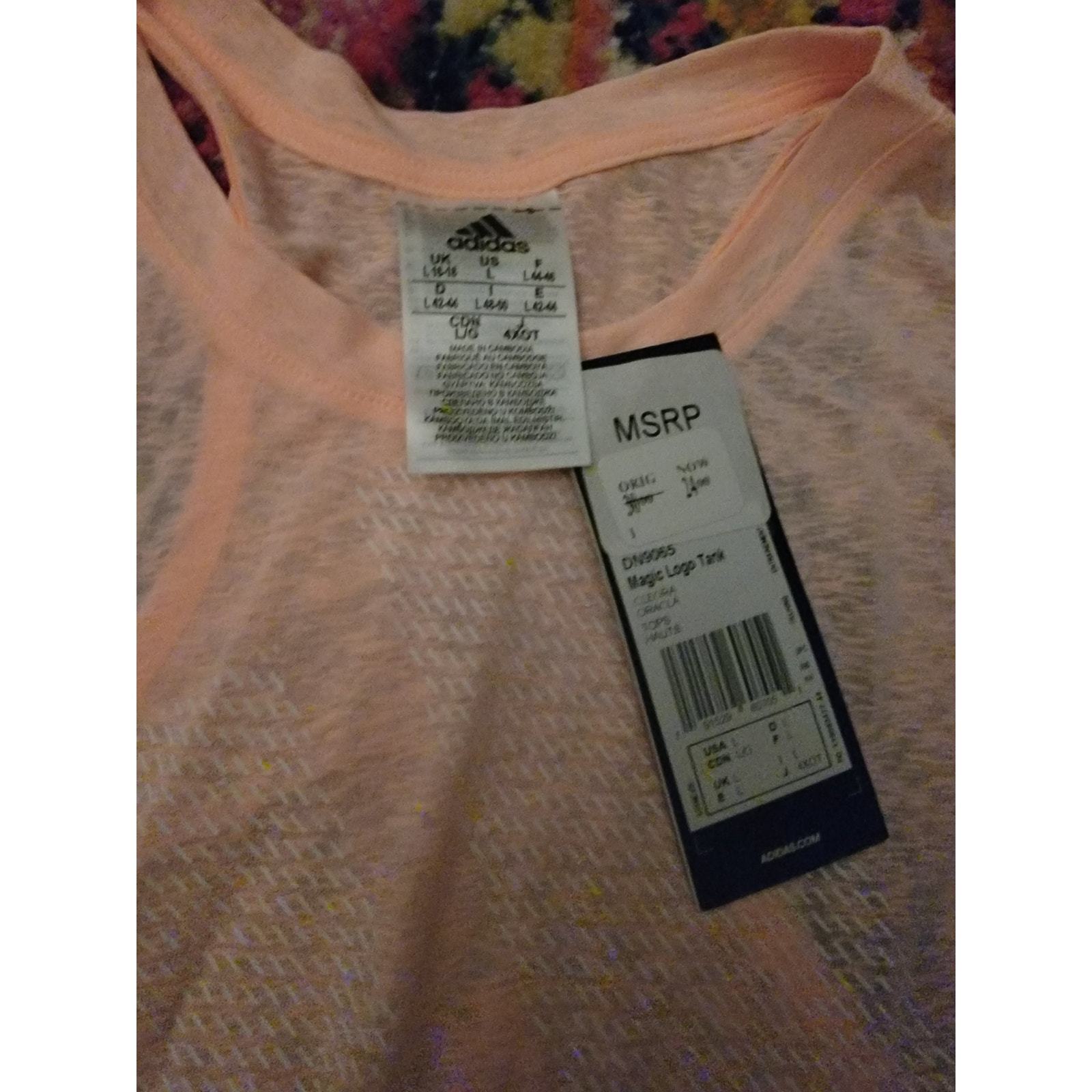 Stay cool and stylish with this lightweight peach Adidas Magic Logo Tank Top in a size Large. New with tags and made with breathable, semi-sheer stretch fabric ? perfect for layering at the gym, on a run, or just out and about.
