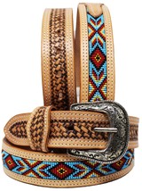 Unisex 1.5" Western Floral Tooled Beaded Full-Grain Leather Belt 26RT31