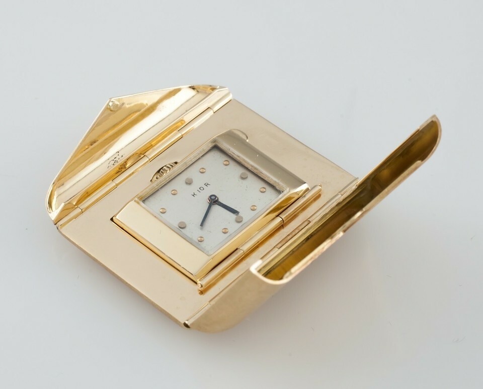 Features Small Movement/Dial Set in Foldable Envelope 14k Yellow Gold Case