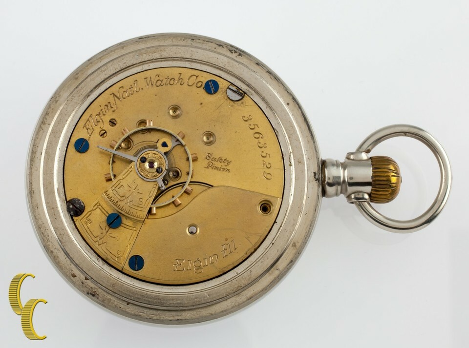 Beautiful Antique Elgin Pocket Watch w/ White Dial Including Blue Hands Dedicated Second Dial