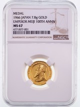 1966 Japan Gold Medal Emperor Meiji 100th Anniversary Graded by NGC as MS-67