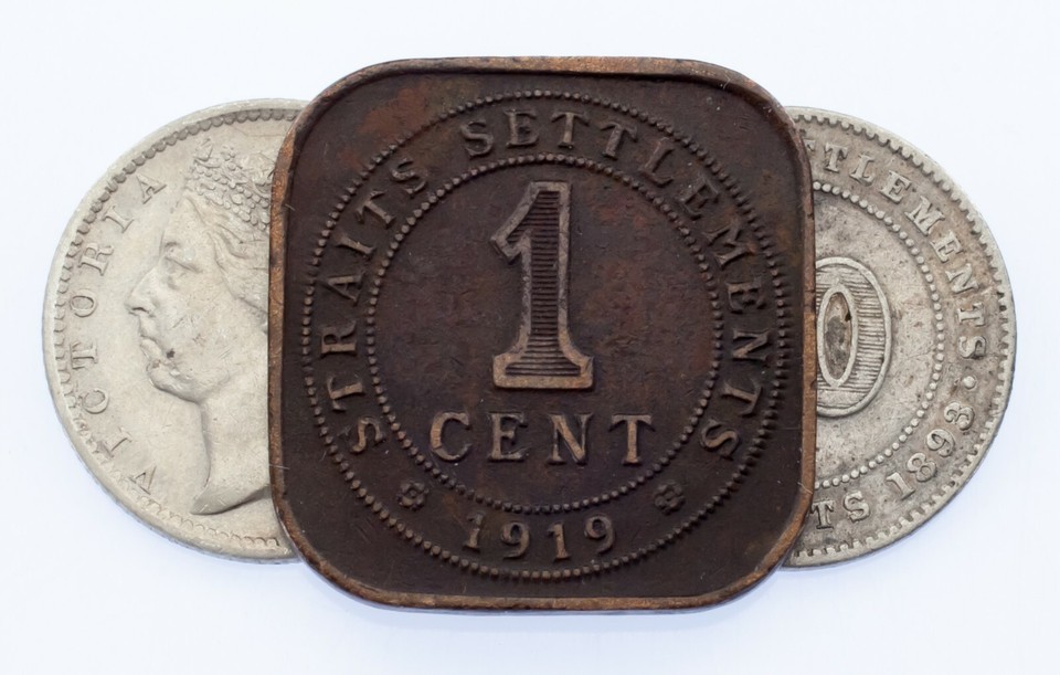 Straits Settlements 3-Coins Lot 1919 Cent, 1893 & 1900 10 Cent