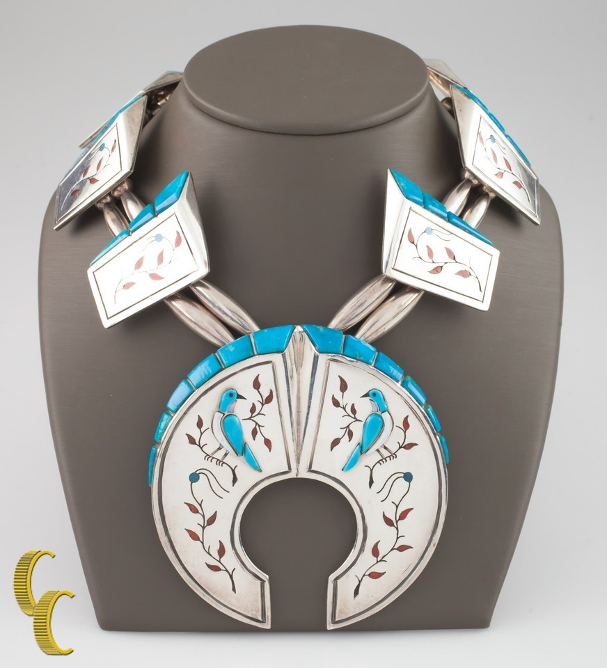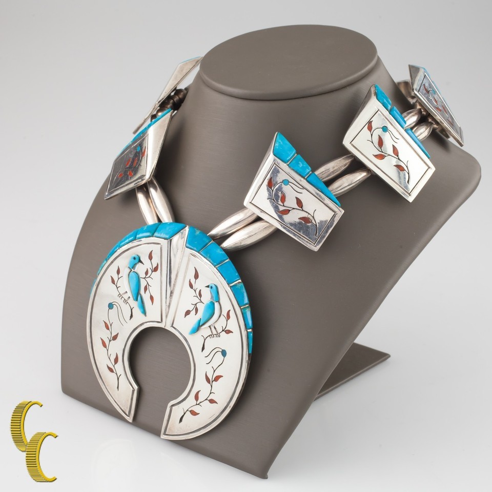 .925 Sterling Silver Turquoise Bird Accent Navajo Necklace