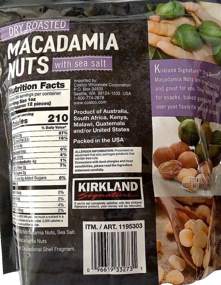 Kirkland Signature Dry Roasted Macadamia Nuts with Sea Salt 24 Oz EXP 06/2025