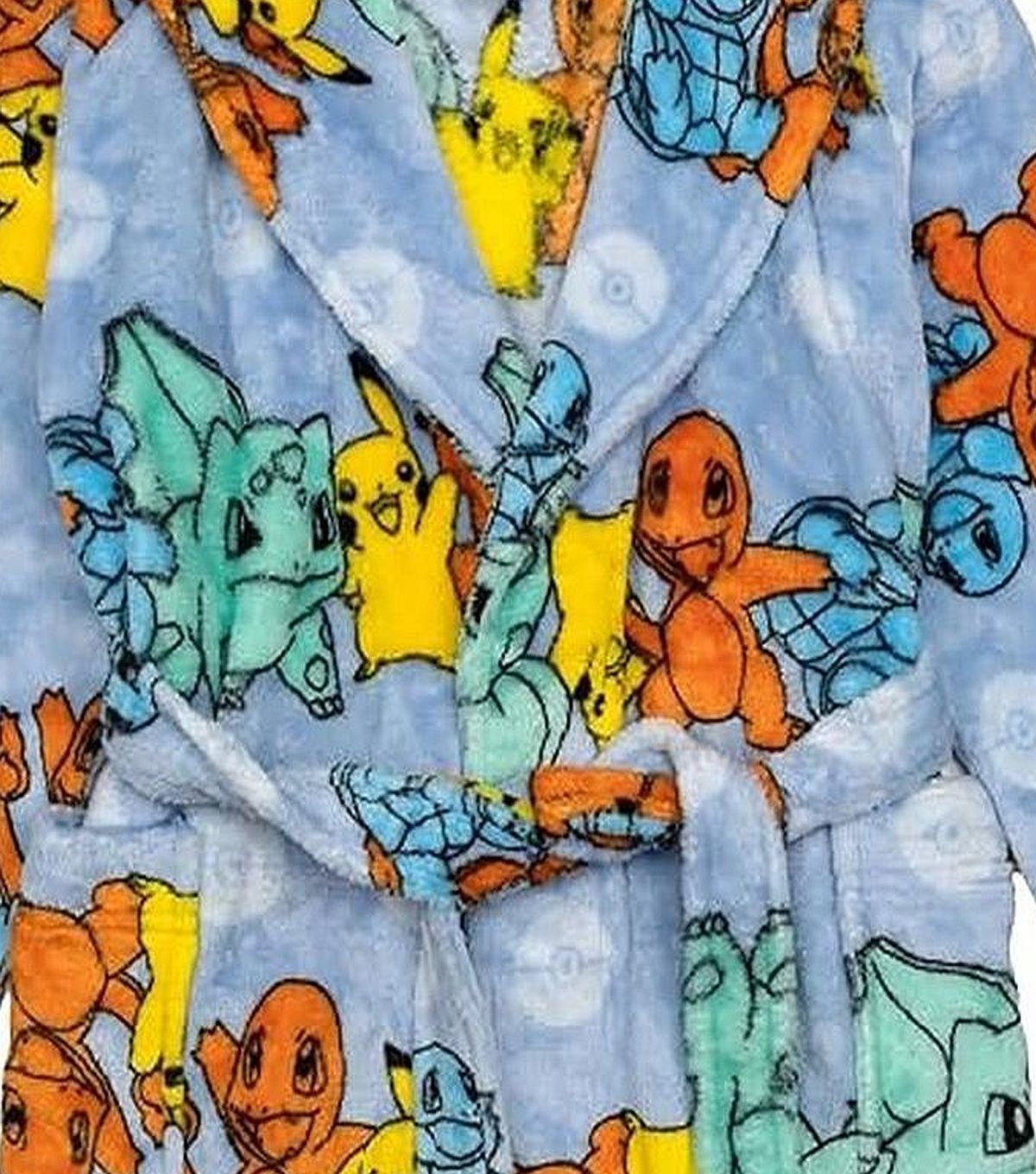 Let your little Pokemon trainer show off their love for their favorite characters while relaxing at home with this adorable Pokemon Robe! Made from ultra-soft minky fleece, this light blue robe is not just cozy; it's a must-have for any young fan. With charming allover prints of beloved Pokemon like Charmander, Bulbasaur, Squirtle, and Pikachu, it's a delightful way to bring their favorite creatures to life!