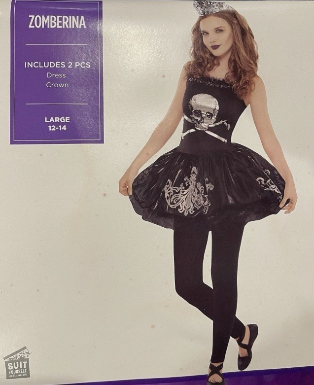 new ZOMBERINA Costume YOUTH sz L (12-14) Ballerina Zombie Hallowen Dress + Crown