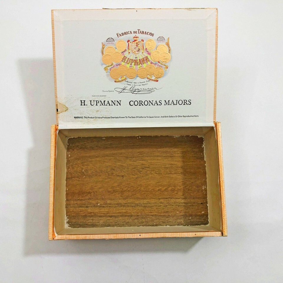 Good condition Vintage H. Upmann empty Corona Majors Wooden Cigar Box. Hand made in La Romana Dominica Republic.