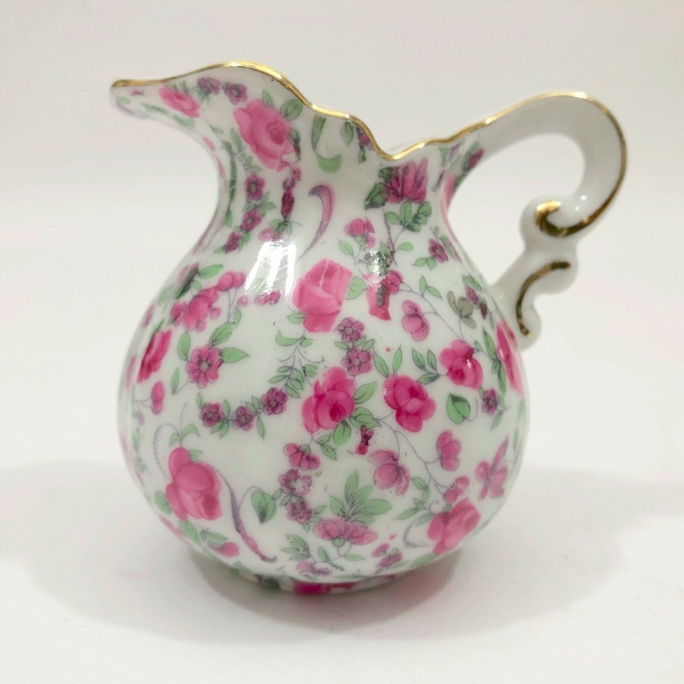 Small Ceramic Porcelain Creamer 3.5x3.75 inches Pink Floral