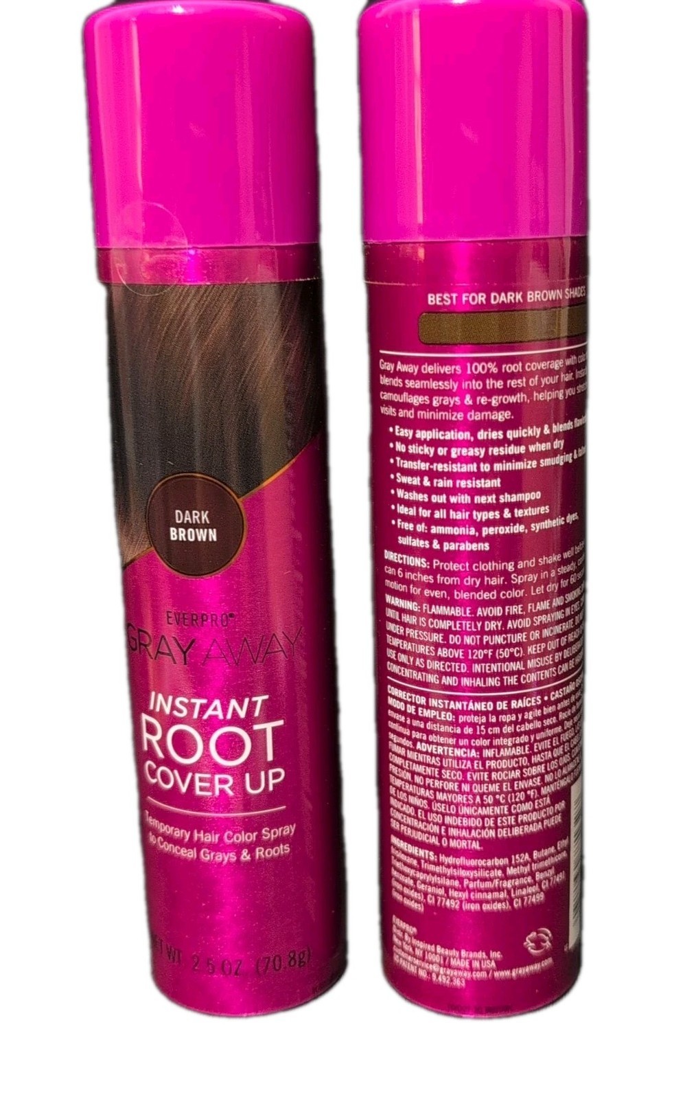 Lot 2 x EVERPRO Gray Away Instant Root Cover Up Spray Dark Brown 2.5oz ea