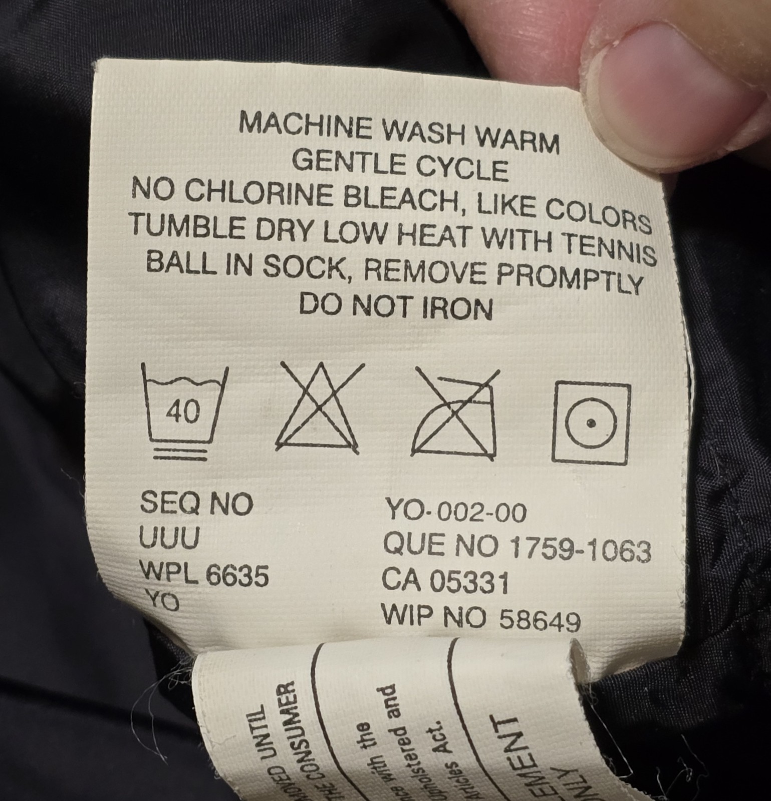 Garment Care: |