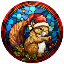 Squirrel Santa Suncatcher Gift, Sunset Stained Glass Style Window Hangings, Wall