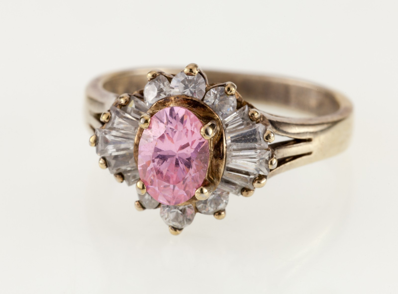 Features Pink CZ with White CZ Ballerina Setting