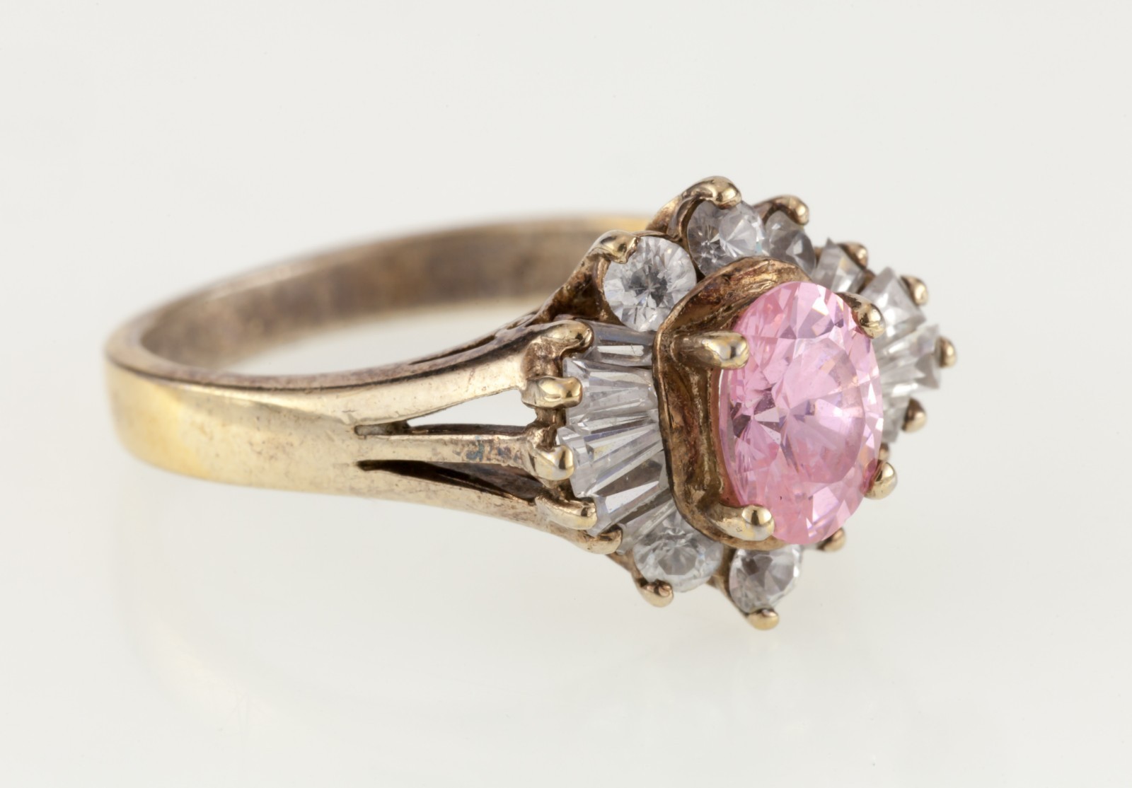 Vermeil Pink CZ Solitaire Ring with CZ Ballerina Setting Size 7