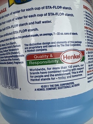 Vintage Sta-Flo Concentrated Liquid Starch 64 Oz Full Bottle Year 2011