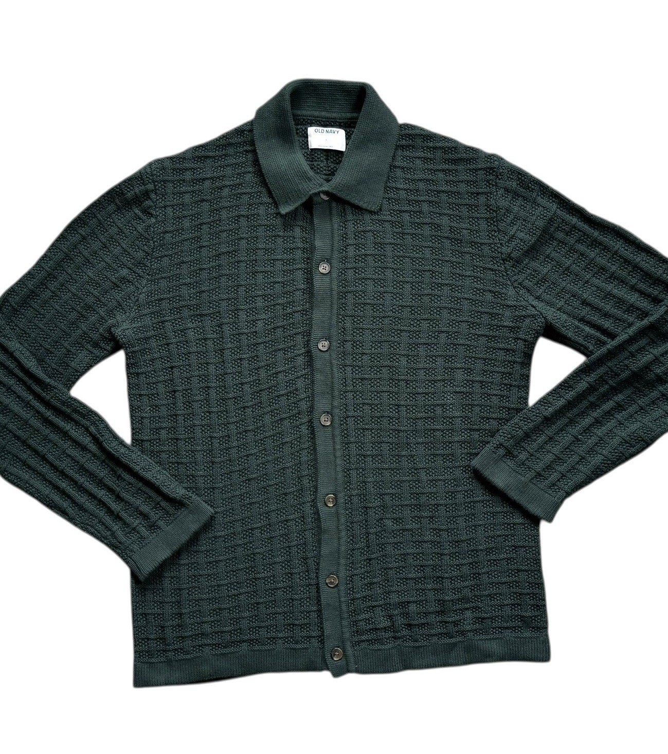 Old Navy Sweater Mens Size L Green Knit Button Up Cardigan Collared Polo Cotton