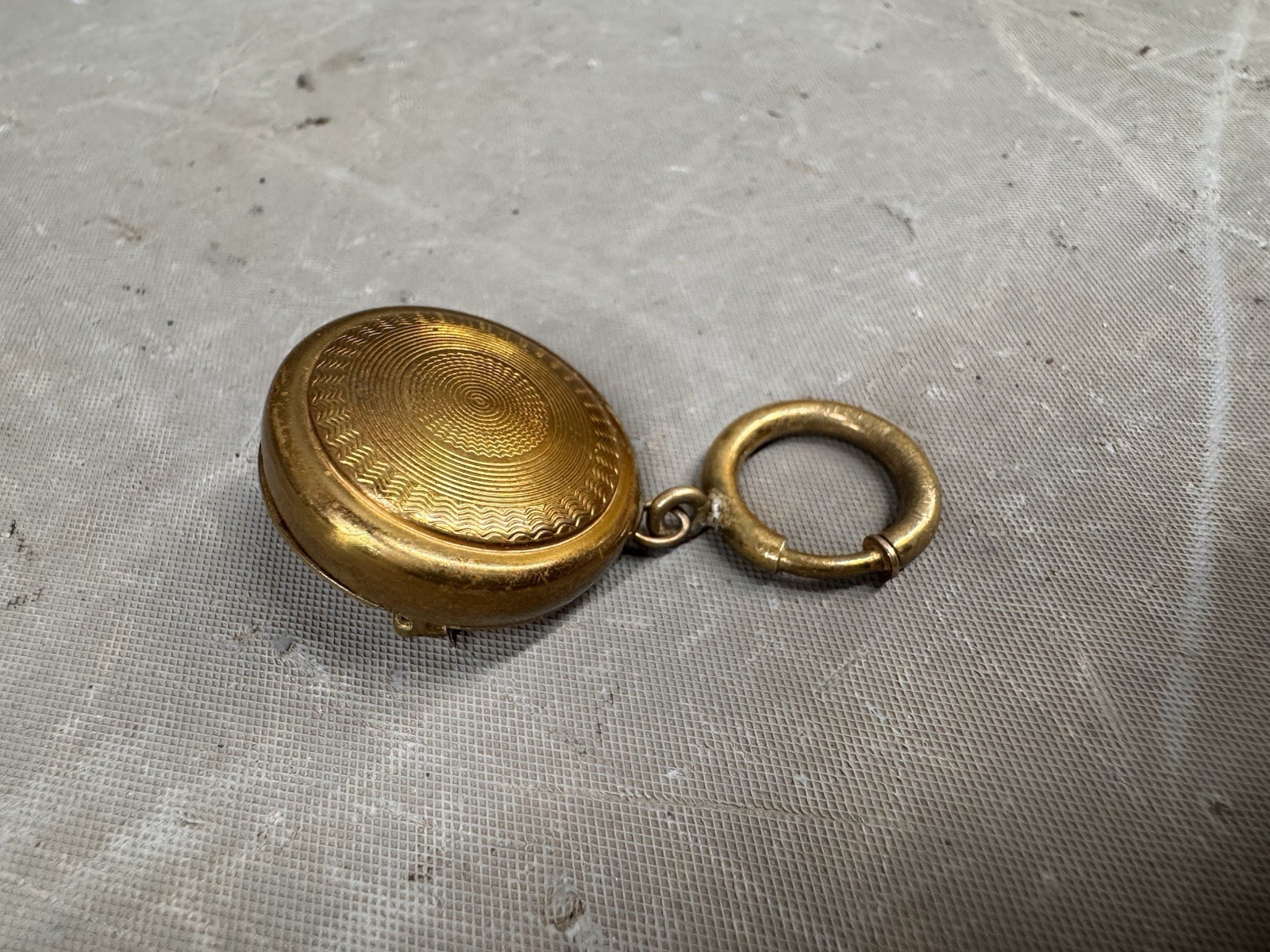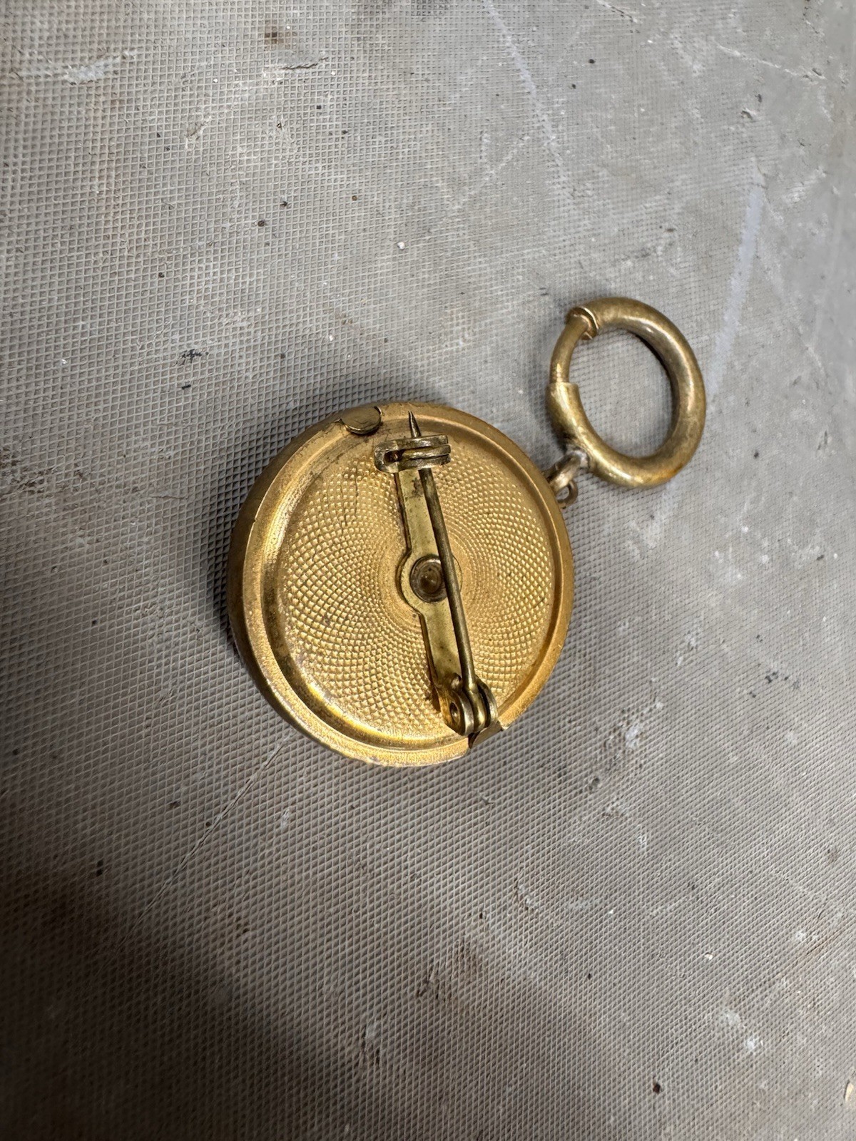Vintage Antique Pocket Watch Fob Brass Pin Retractable Key Chain Goldtone Tooled