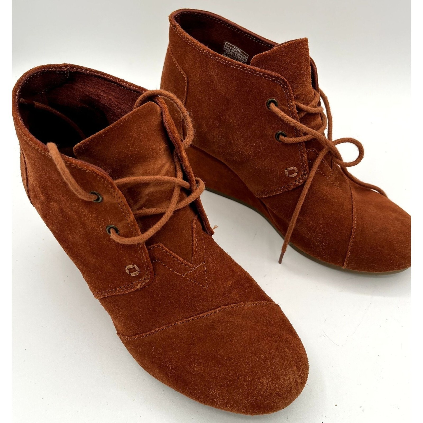 TOMs womens brown rust desert wedge suede lace up comfort booties size 7.5