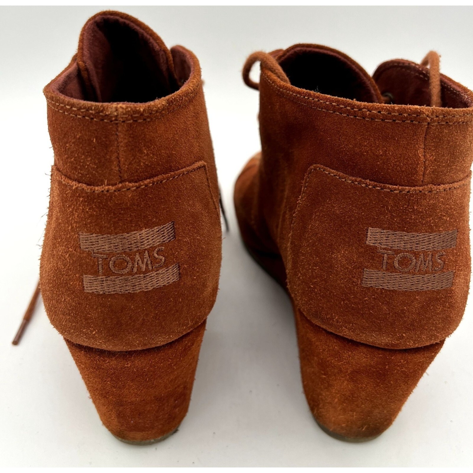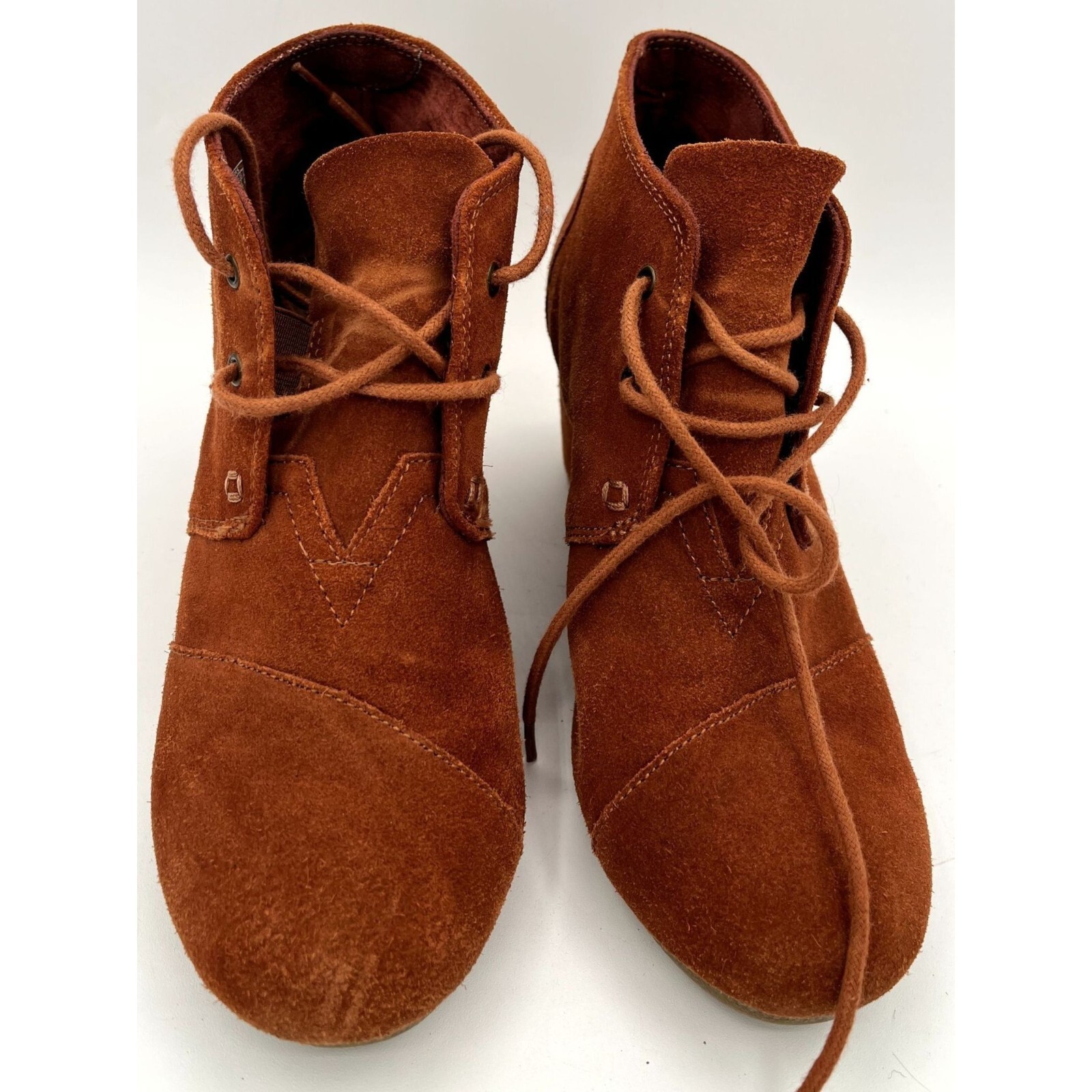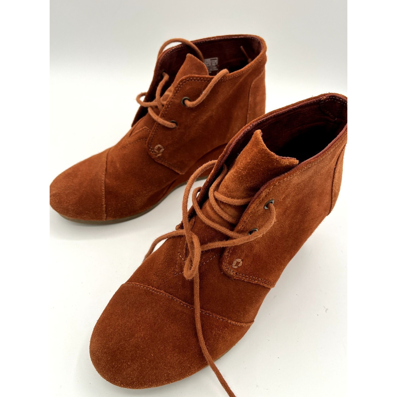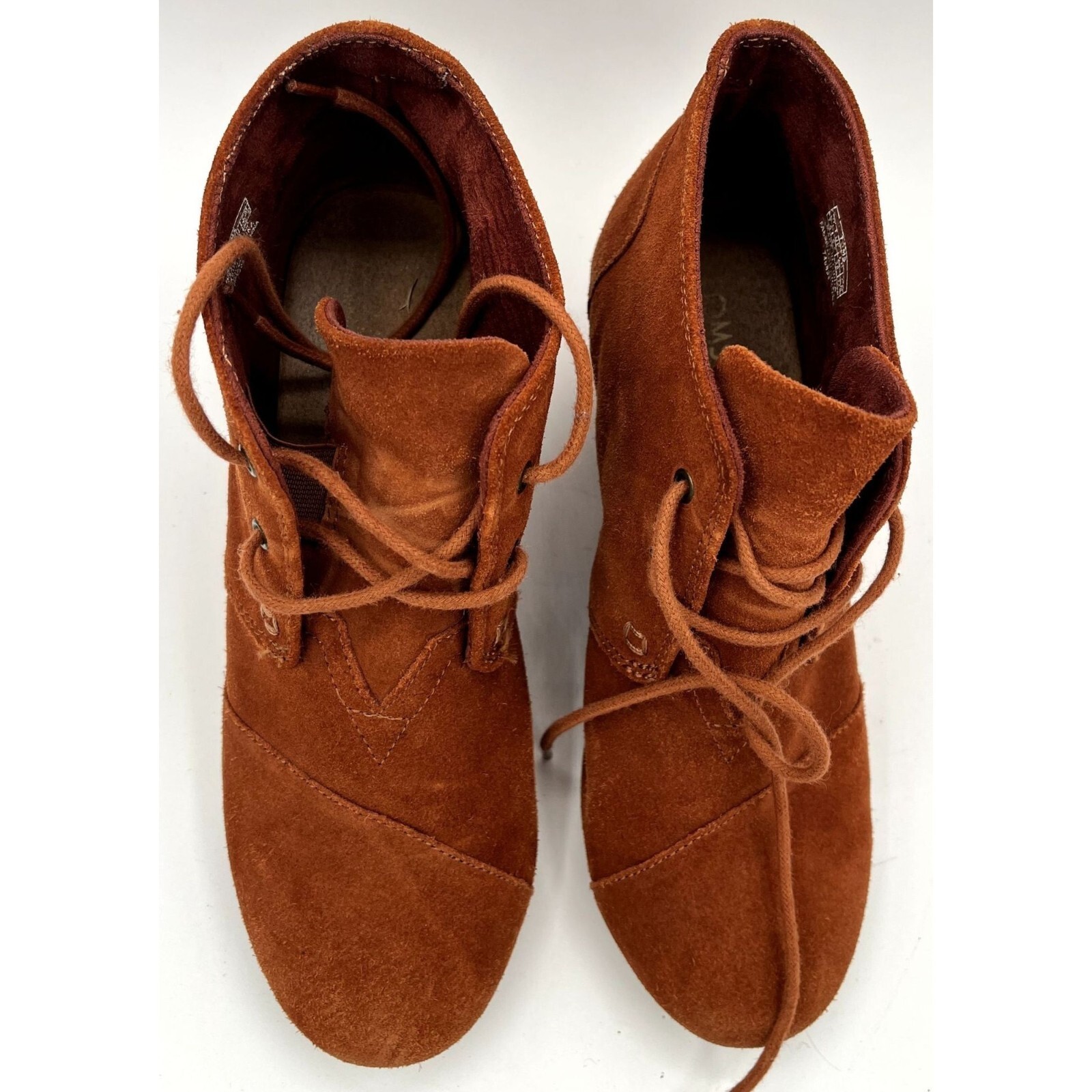 Toms womens brown rust desert wedge suede lace up comfort booties 740830 size 7.5