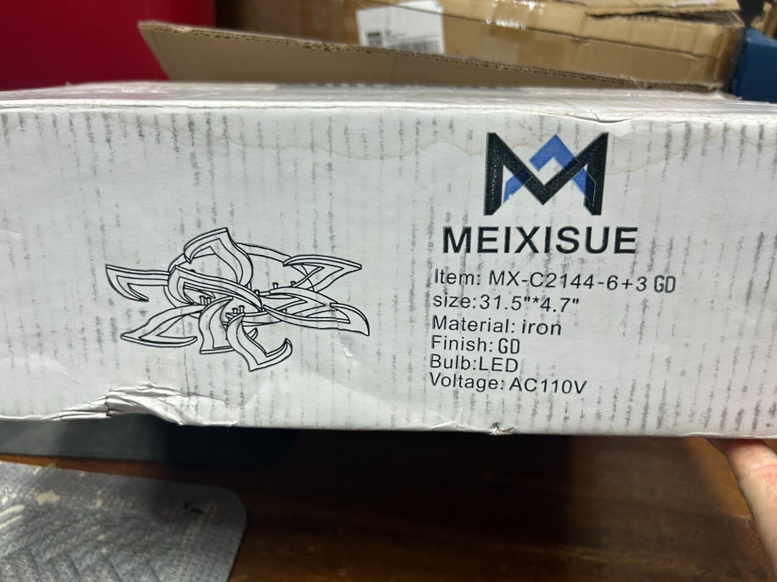 Meixisue 31.5" Large Floral Adjustable LED Ceiling Light Fixture, Gold + Remote