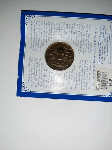 Edison & Ford Winter Estates Antiqued Solid Brass Commemorative Coin 1997