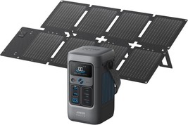 Anker SOLIX C200 DC Power Bank Station (60,000mAh) and 60W Solar Panel, 192Wh Portable Power Station, LiFePO4 Battery, 200W Solar Generator, for Outdoor, Camping, Traveling, and Emergencies