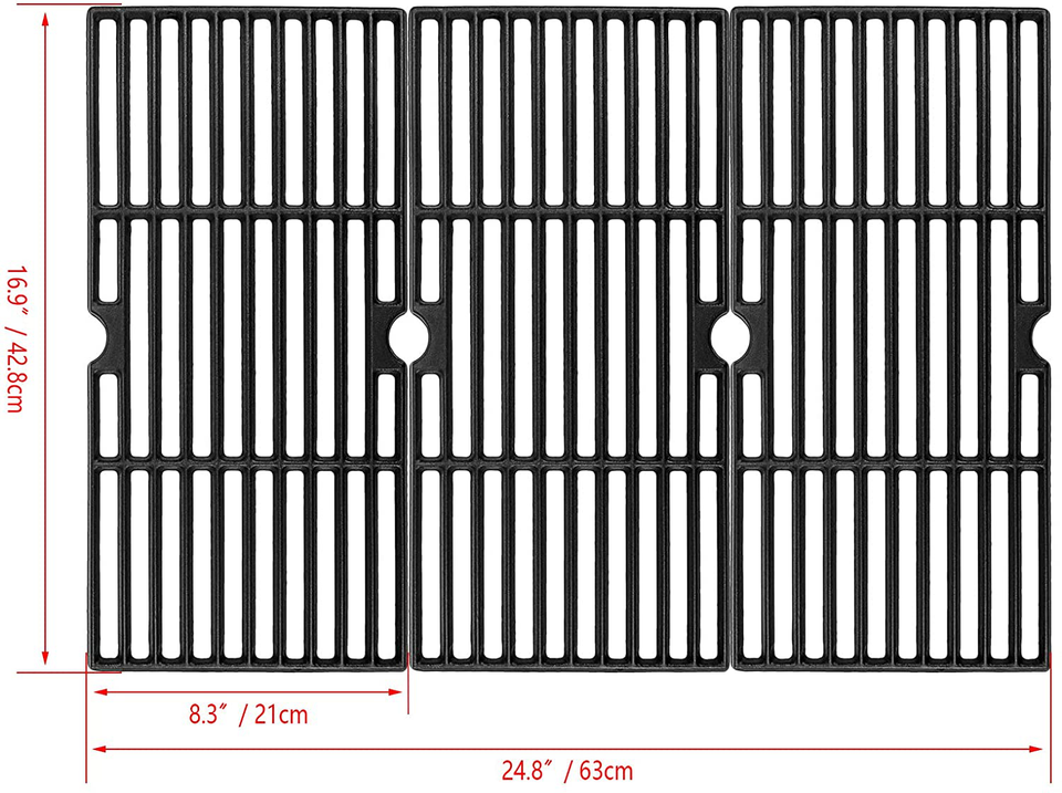 Matte coated cast iron cooking grids, Dimensions: 8 5/16" x 16 15/16" Each or Total 24 15/16" x 16 15/16". After-sales service: If you have any questions about the grate you received, please feel free to contact us.