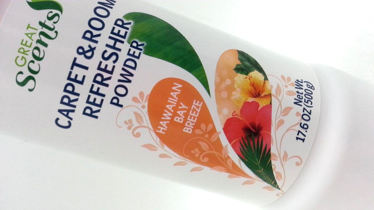 Keep your home smelling fresh with Great Scents Carpet Room Refreshening Powder in Hawaiian Bay Breeze.