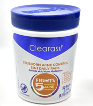 ( 1 ) Clearasil 5 in 1 Daily Cleansing Pads Stubborn Acne Control 90-Count IN A PACK