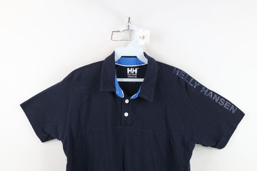 Vtg Helly Hansen Mens Medium Faded Spell Out Sailing Collared Polo Shirt Blue