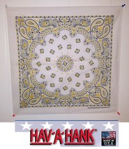 *USA MADE Hav-A-Hank WHITE w/GOLD GLITTER PAISLEY BANDANA BANDANNA SCARF Scarve