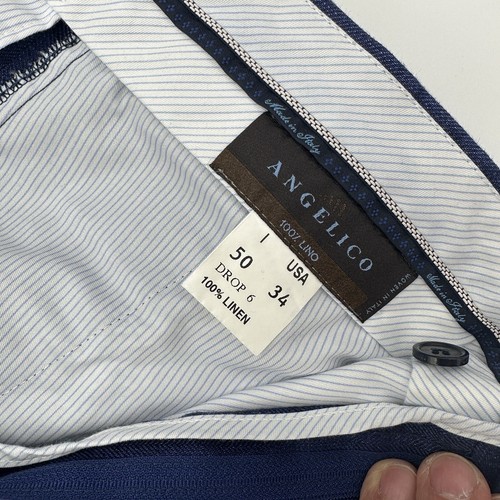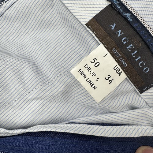 Angelico linen Blue men Pants Made In Italy Size 34 Drop 6 45?L.