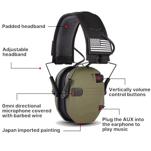 Bullet point: Assured hearing protection - Keep your hearing safe with these ear protection shooting ear muffs for noise cancelling and situational awareness. Designed with cutting-edge noise reduction and frequency tuning for natural sound perception to allow you to converse normally with the confidence your hearing will be protected. With a noise reduction rating of 23dB, these lightweight earmuffs offer reliable hearing defense.