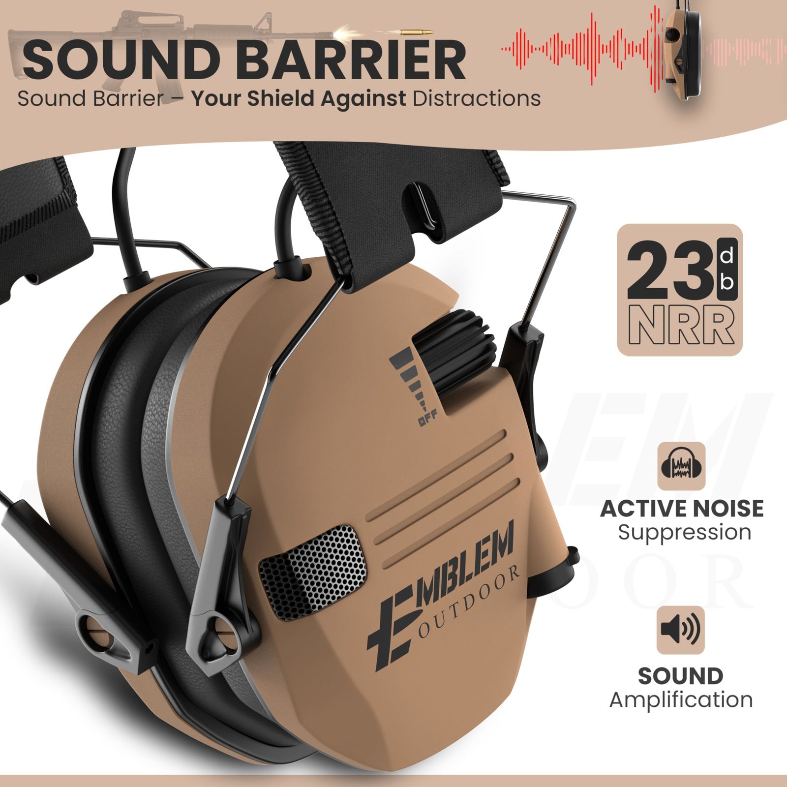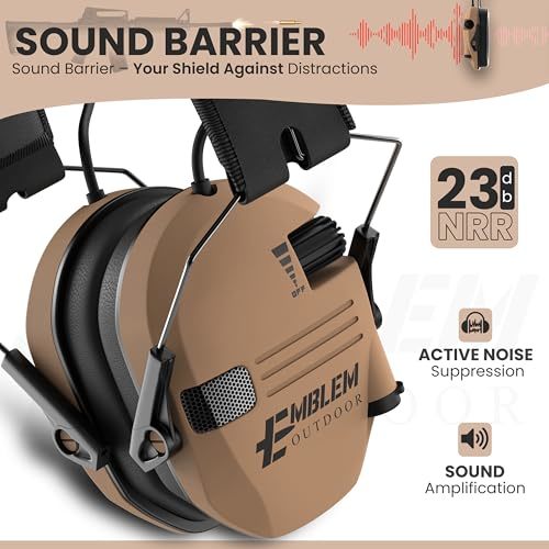 Emblem Outdoor Shield Pro Electronic Shooting Ear Protection for Gun Range | NRR