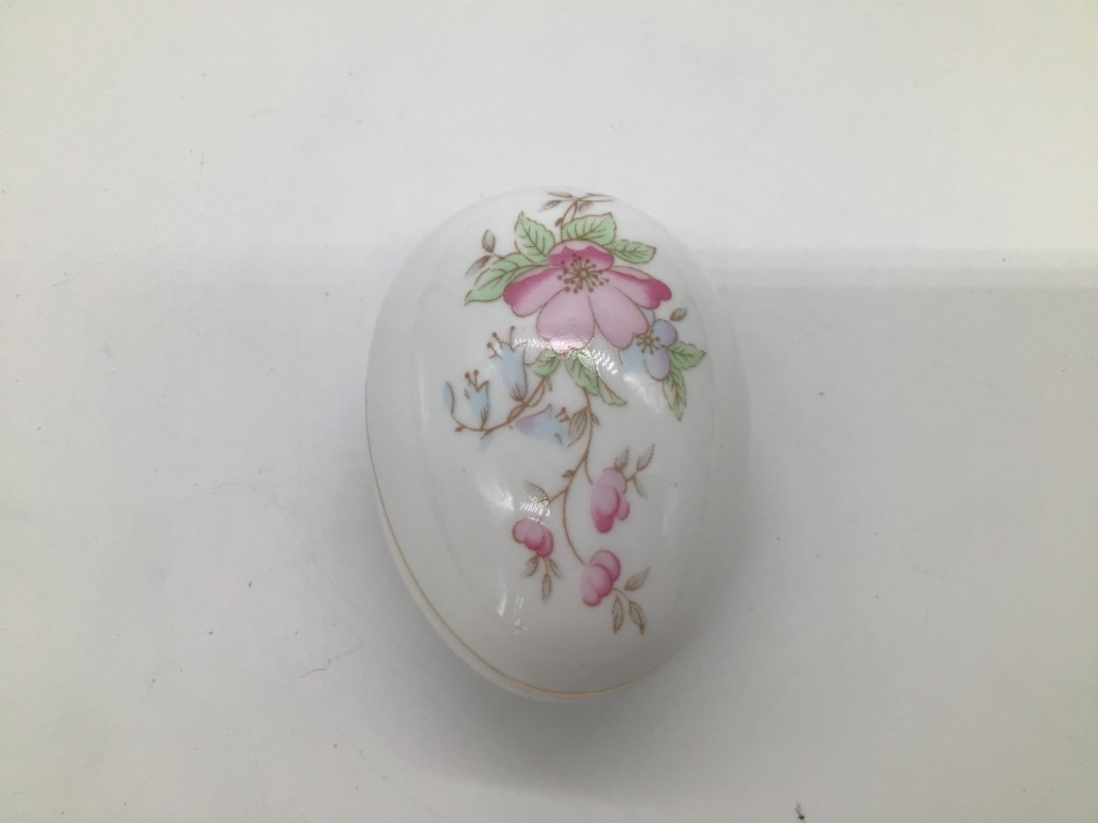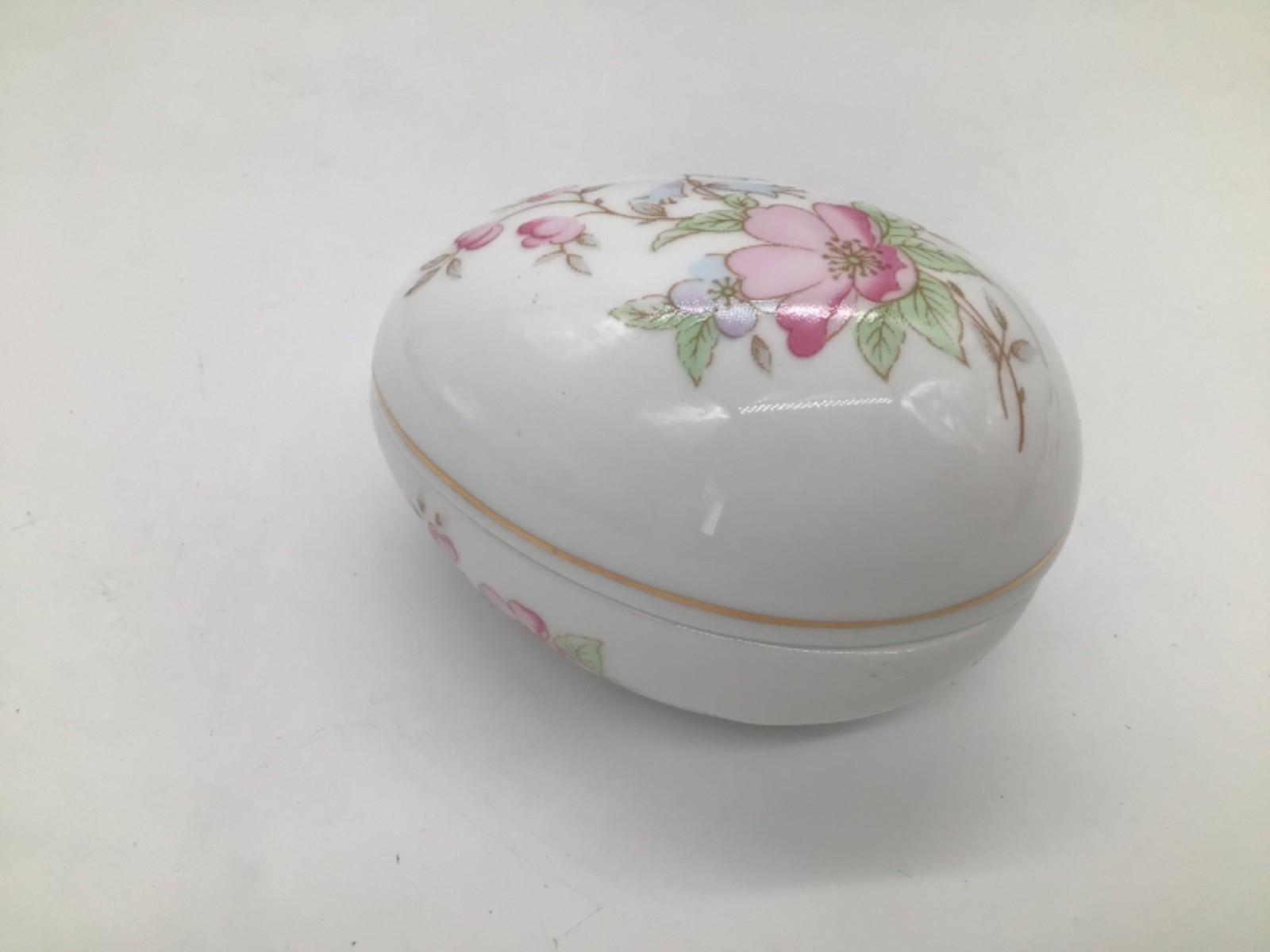 Lefton Porcelain Egg Trinket Box Floral Gold Trim Vintage Taiwan 3"