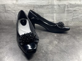 Torta Caliente Kitten Heels Women 8M Shoes Black Patent Slip On Comfort Pumps