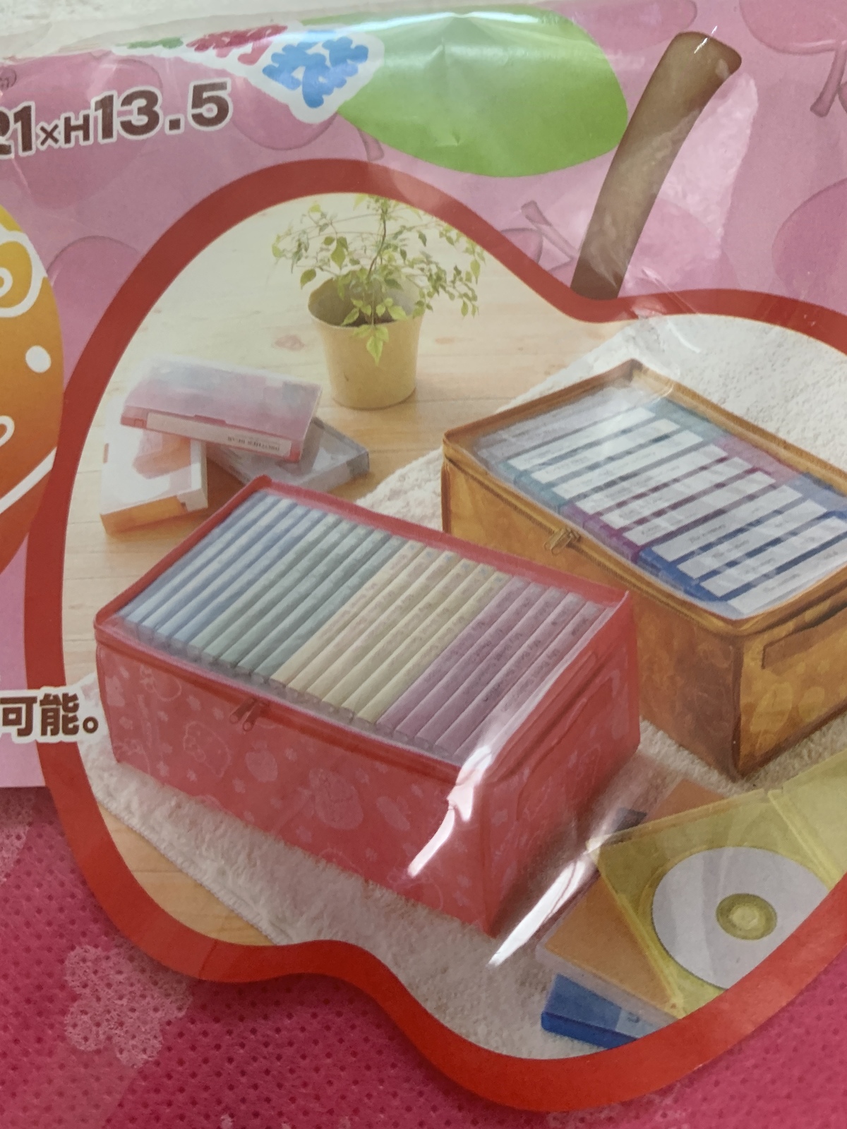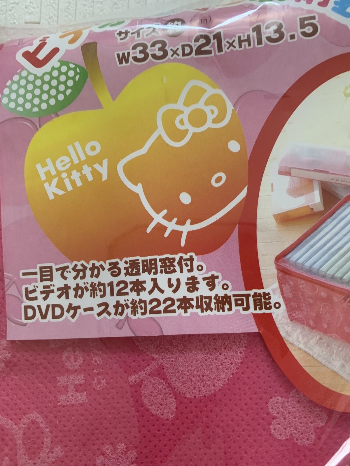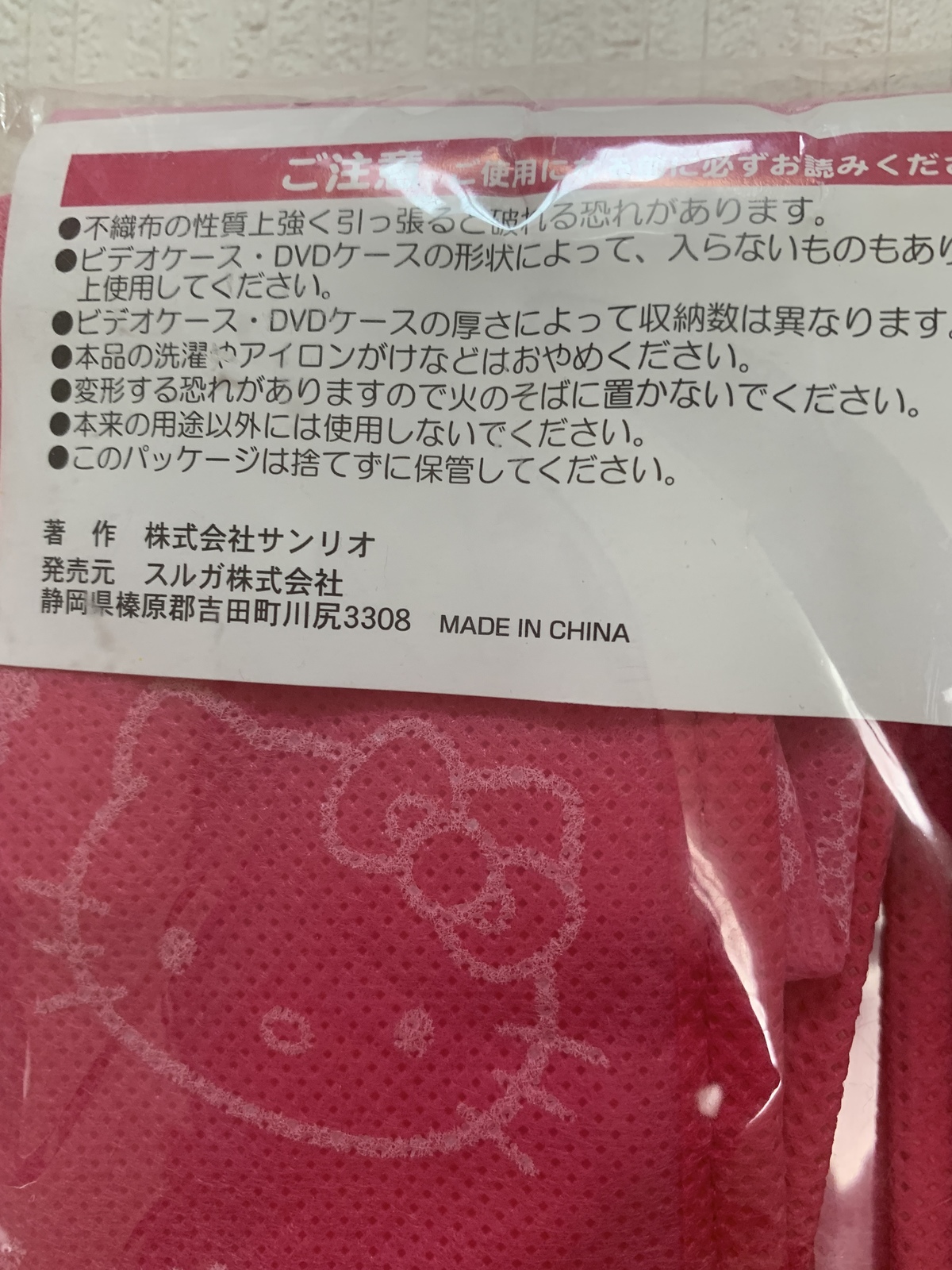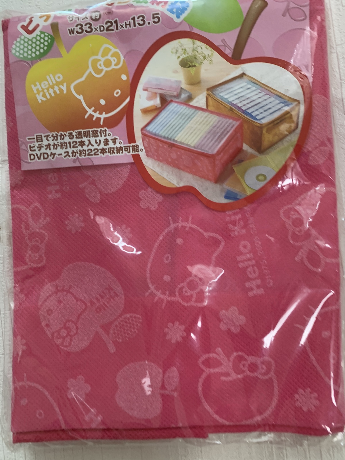 Hello Kitty Video/DVD Storage Bag, 33 x 21 x 13.5cm Unopened and unused. This soft material unfolds to create a storage case for Hello Kitty, video cases, DVD cases, and other items. It's from 2006, so while it's unused, the packaging may show signs of aging.