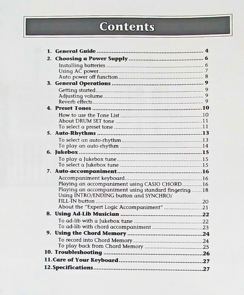 Casio CTK-510 Electronic Keyboard Users Owner's Manual Booklet, Reproduction.