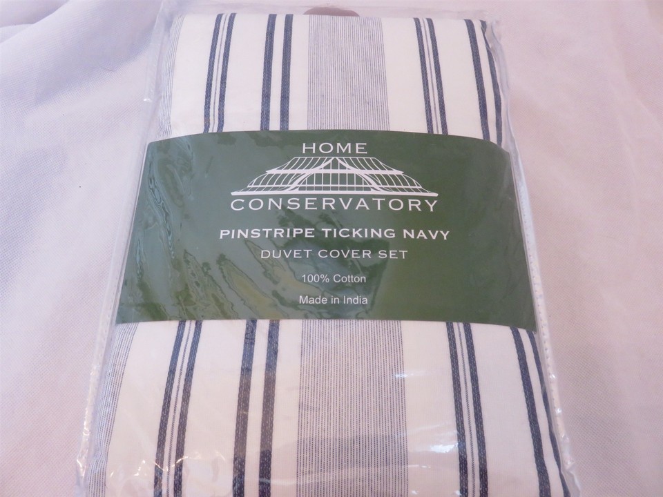 Home Conservatory Pinstripe Ticking 3P King duvet cover shams set Navy