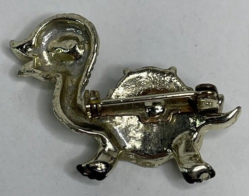 Vintage TURTLE BROOCH Pin Tortoise Rhinestone Cabochon Enamel Costume Jewelry.