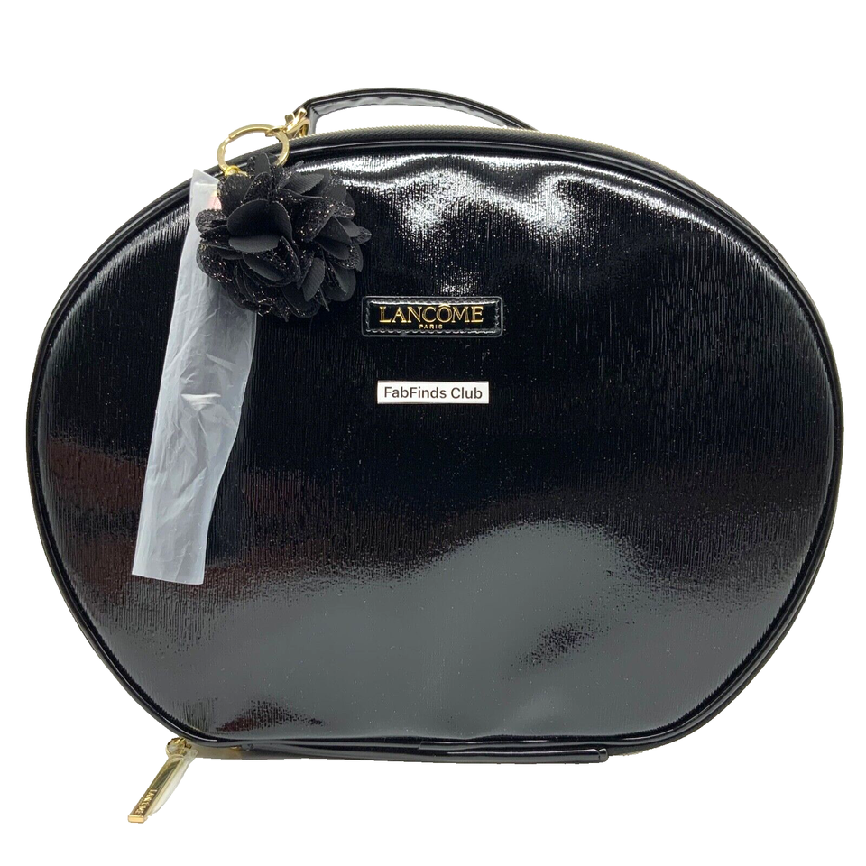 2x Lancôme Round Textured Faux Patent Leather Train Case with Removable Keychain