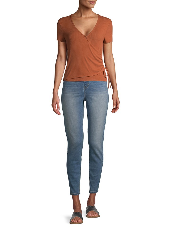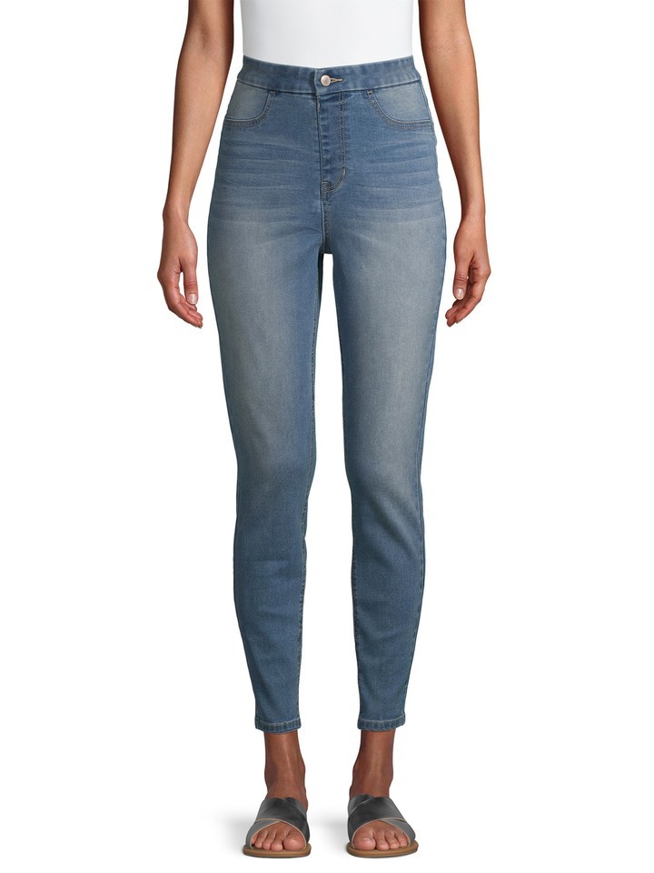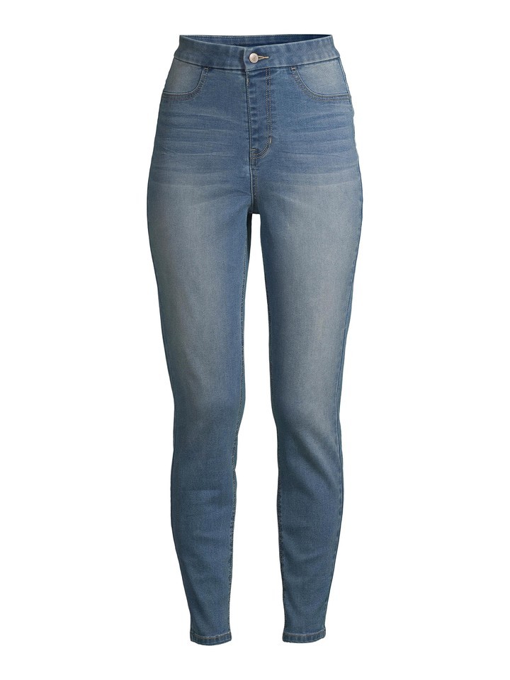 Jet out of the house in comfortable pull-on jeggings from No Boundaries. The high-rise silhouette reflects your trendy style and pairs perfectly with slip-on sandals. Don?t forget: the stretch finish keeps you comfortable during your days and nights.