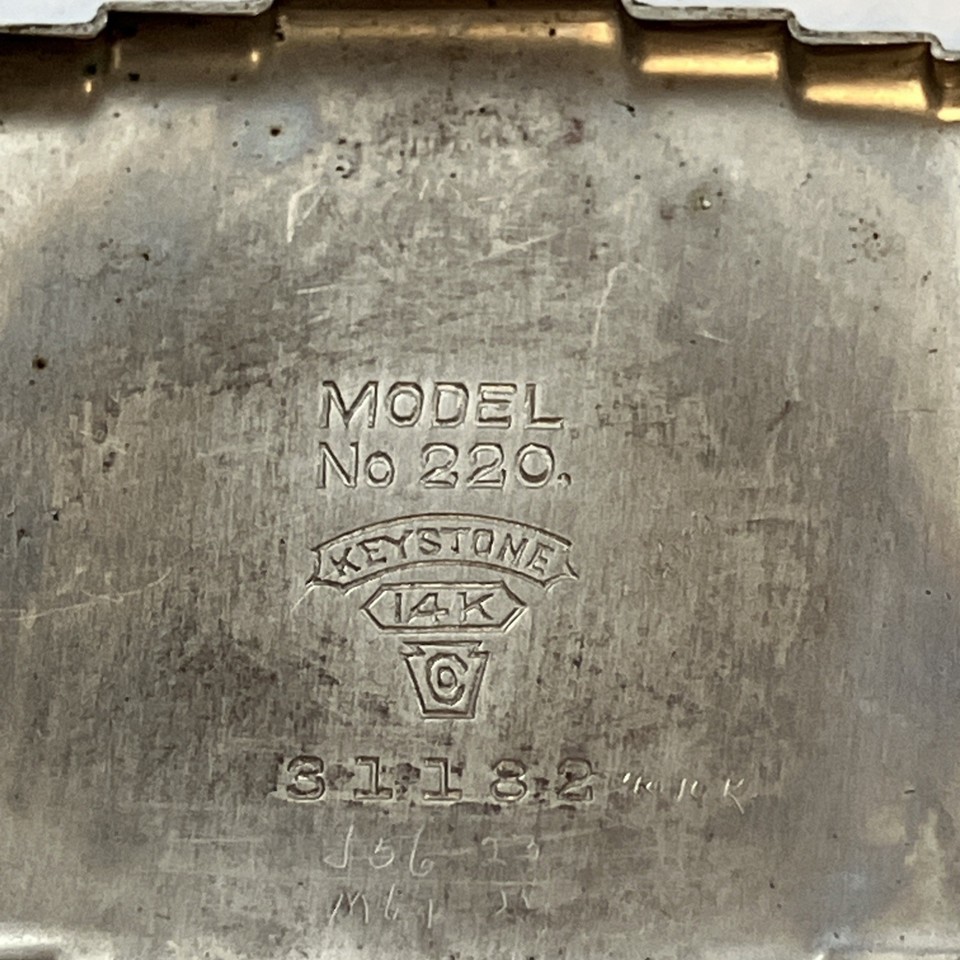 The back plate and top with crystal are 5 grams and we did not want to take the watch apart as it does wind and does run but we figure the housing that holds the movement is at least another 5 grams and possibly more. Because it?s still working we are listing it. If it had been in any way broken, it would have been scrapped. Great project watch that is befitting of a new band and good clean.