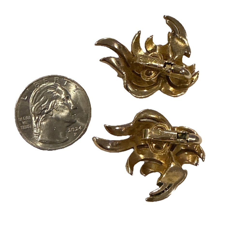 Vintage Alfred Philippe Trifari Wave Crystal Gold Tone Clip On Earrings