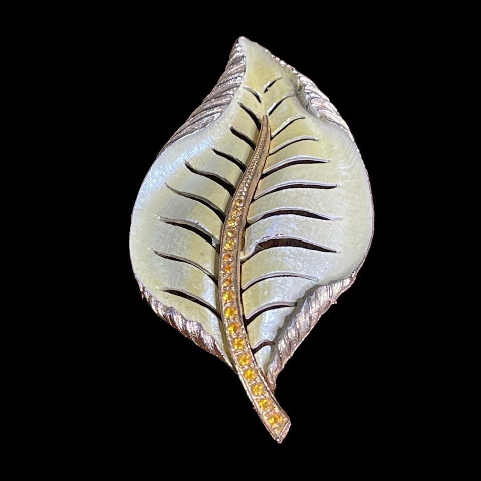 Vintage Brooch Leaf Pin Enamel Rhinestone and 41 similar items
